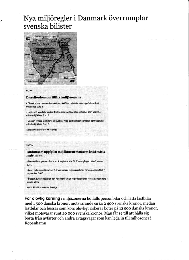 Kort kan man konstatera att lätta fordon upp till 3500 kg som är registrerade första gången EFTER 1/9 2016, utrustade med partikelfilter och uppfyller EURO5, samt tyngre fordon som är registrerade första gången EFTER 1/1 2015, utrustade med partikelfilter och uppfyller EURO6 kan köra i Miljözonerna.