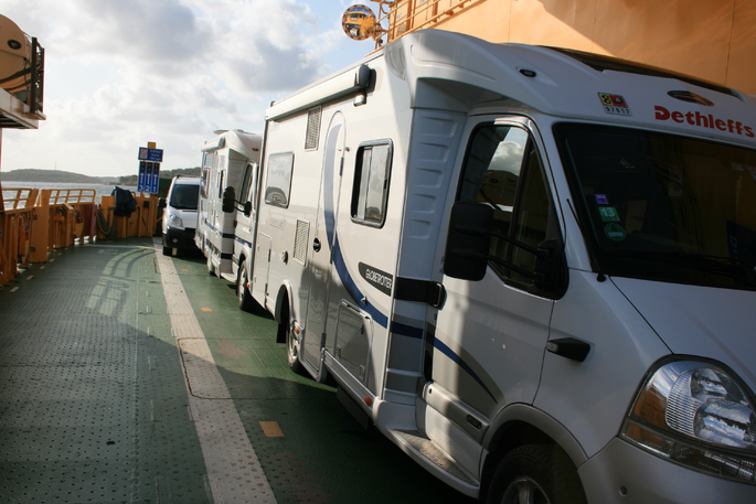 På sista färjan var vi 5 husbilar och några personbilar och det var väldigt trångt.