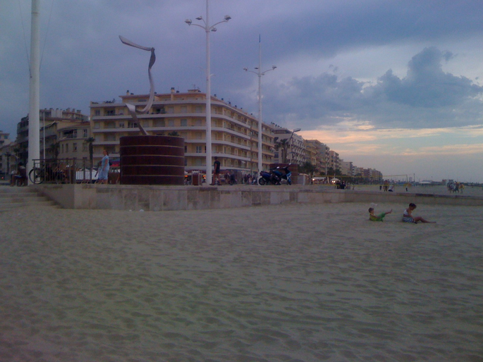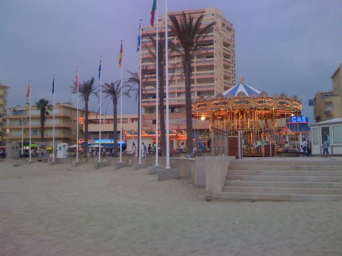Vi trodde att den låg nära "La Mer", men fick veta i receptionen att det var ca 3 km dit. Vi bestämde oss i alla fall för att gå för det började komma lite moln, så vi tänkte att promenaden blir nog inte så varm och klockan var ju redan 18.00. Tidigare hade temperaturen legat på 32-34°.